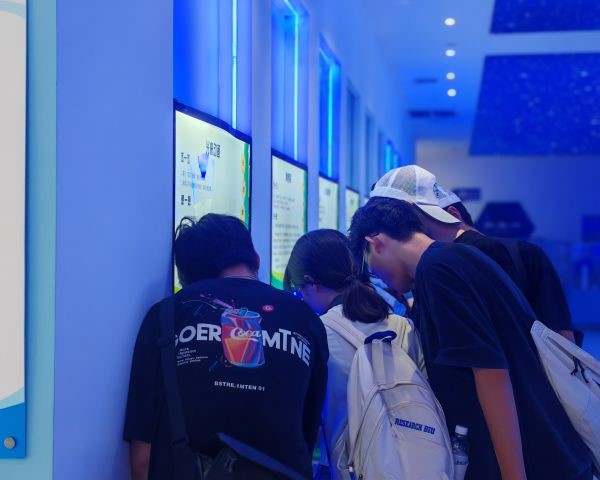 (实践队成员体验馆内互动式项目)