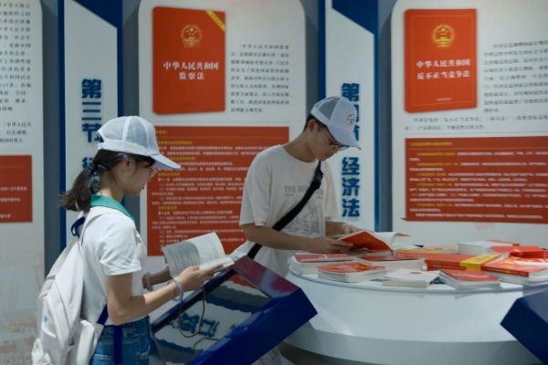 (实践队成员在阅读相关法律读本)
