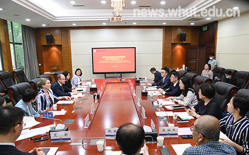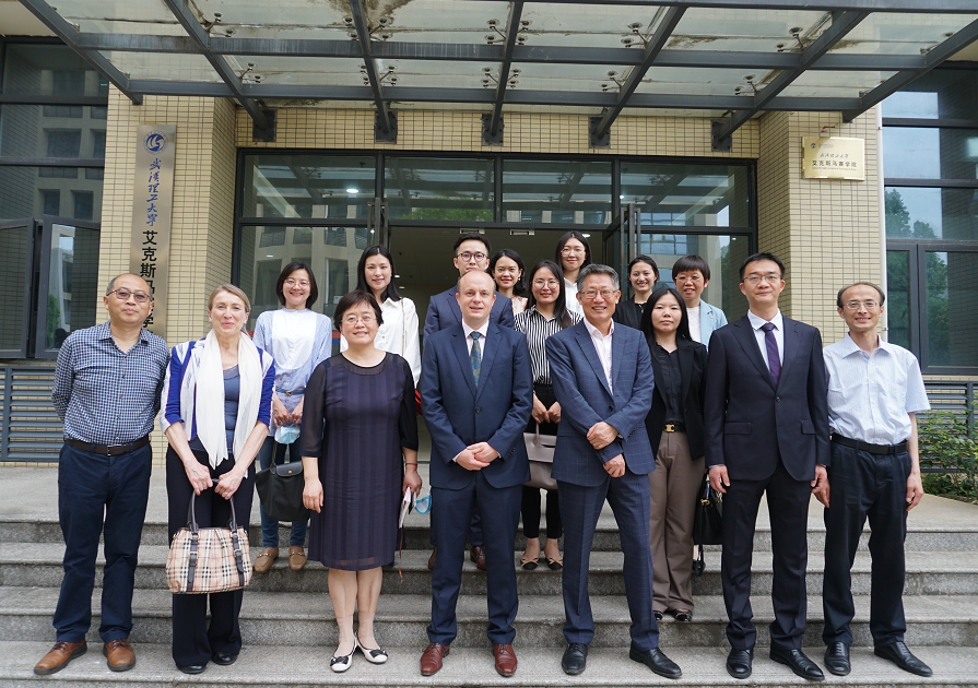 王发洲副校长向费奕专员一行来访表示欢迎,对法国驻武汉总领事馆长期以来支持我校与法国高校及亚洲色吧