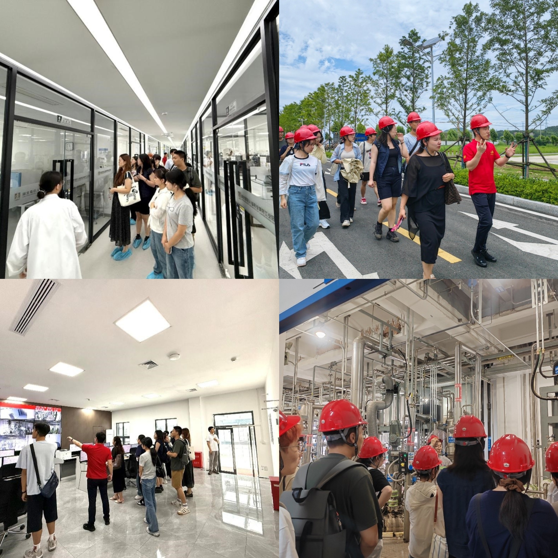在工作人员的引导下,大家有序参观了企业的生产车间、质量保证部办公室、QC实验室、监测中控室以及废水处理设施。工作人员详细介绍了企业的核心产品、先进生产设备及工艺流程,同时结合实际案例,讲解了行业技术创新成果与未来发展趋势。同学们认真聆听,不时就生产细节、技术原理等问题提问,现场互动频繁,学习氛围浓厚。